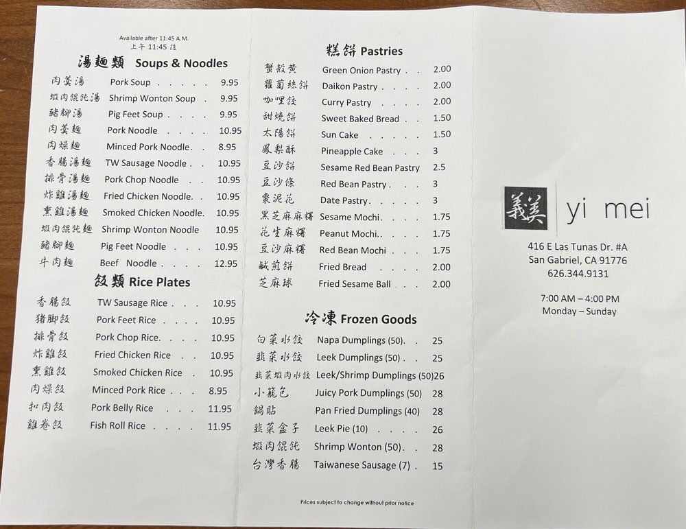 Whether you're craving a hearty breakfast or a satisfying lunch, Yi Mei San Gabriel is ready to satisfy your Taiwanese comfort food cravings!